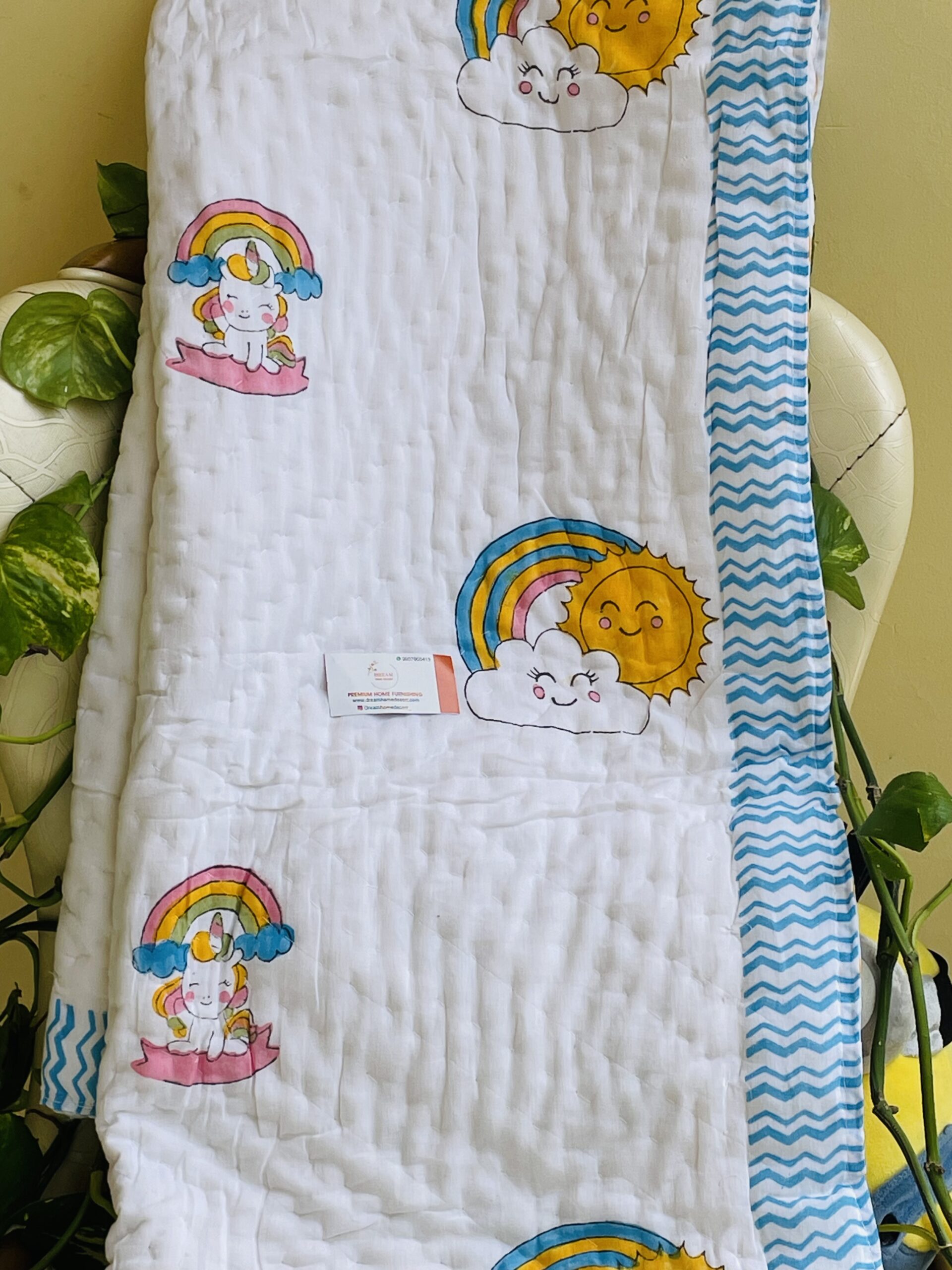 HAND BLOCK PRINTED REVERSIBLE MULMUL BABY DOHAR