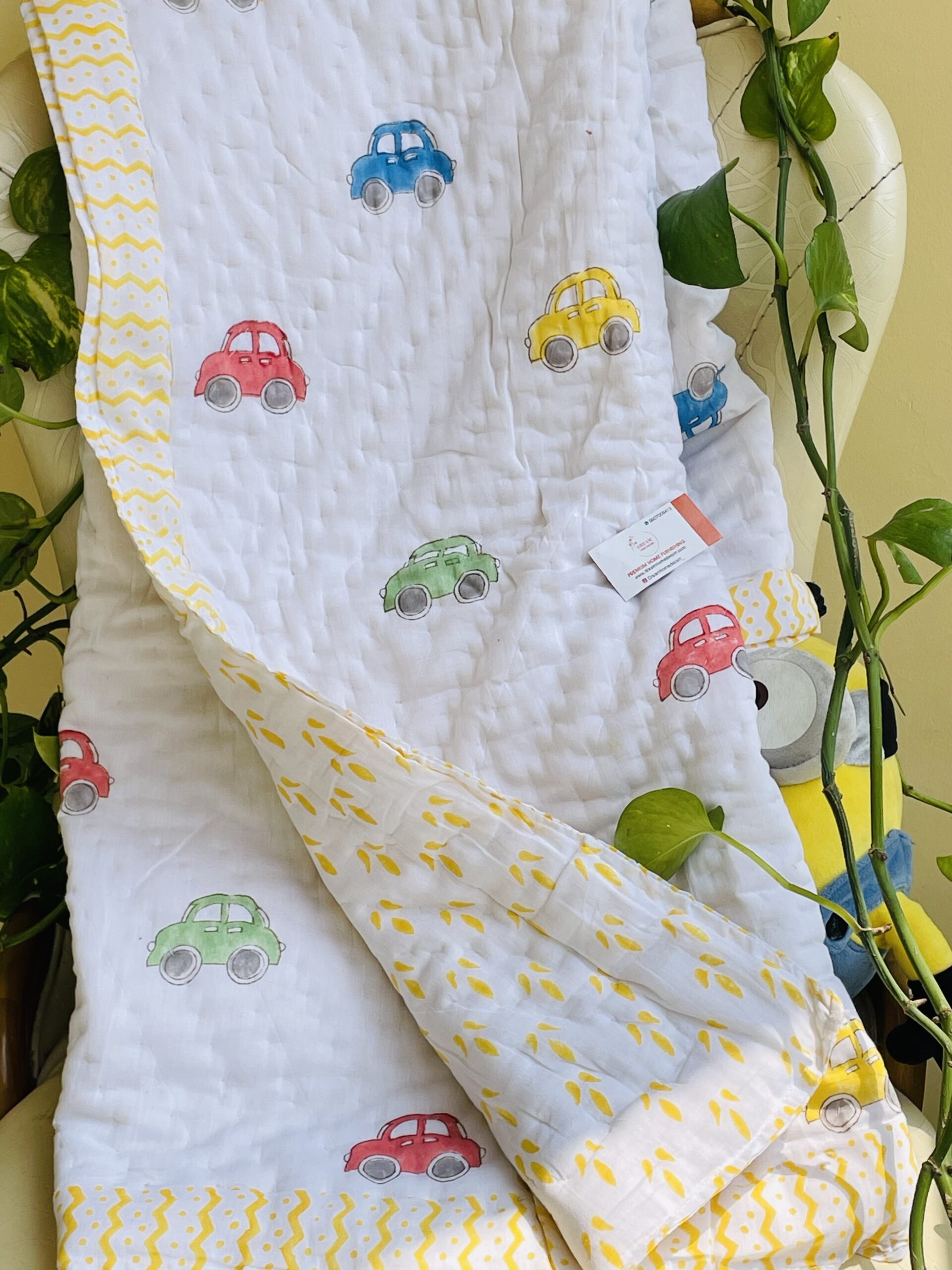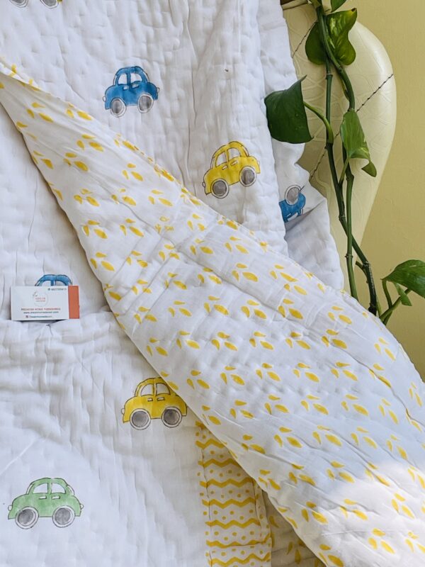 Be the first to review “CAR HANDBLOCK PRINTED REVERSIBLE MULMUL BABY QUILT | COMFORTER”