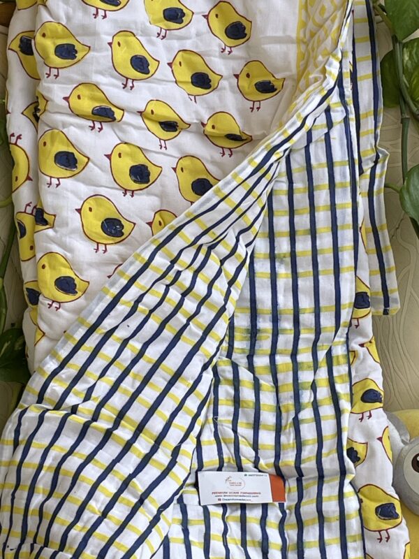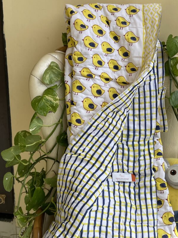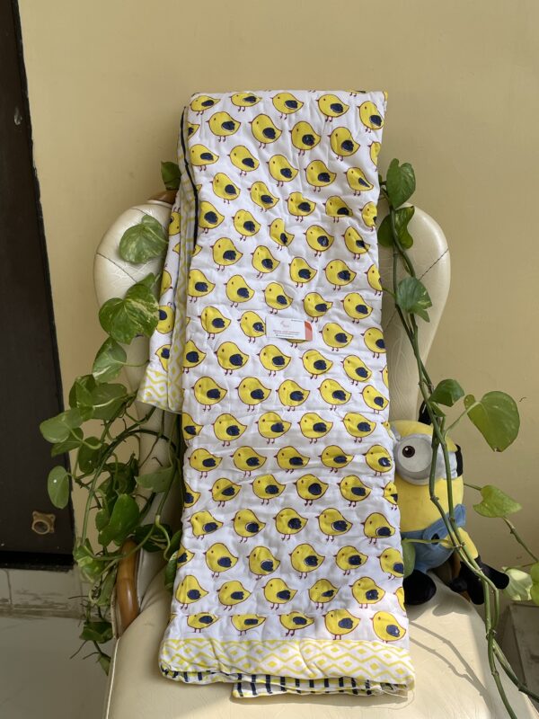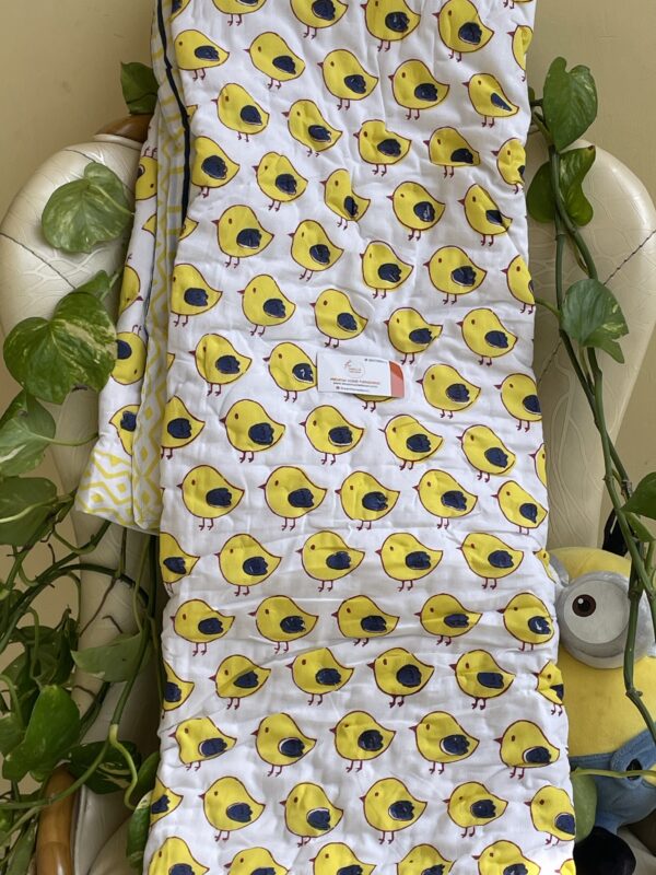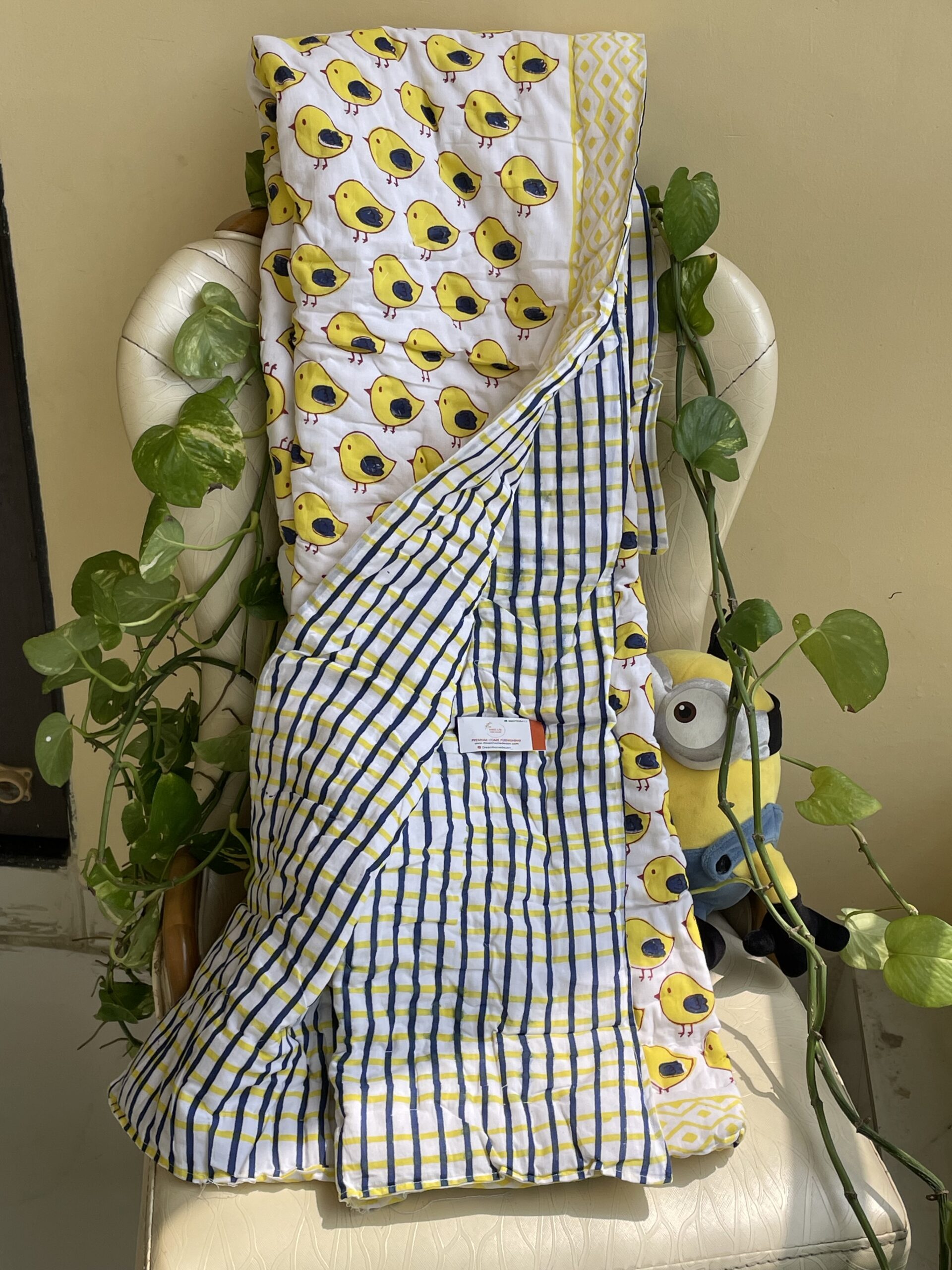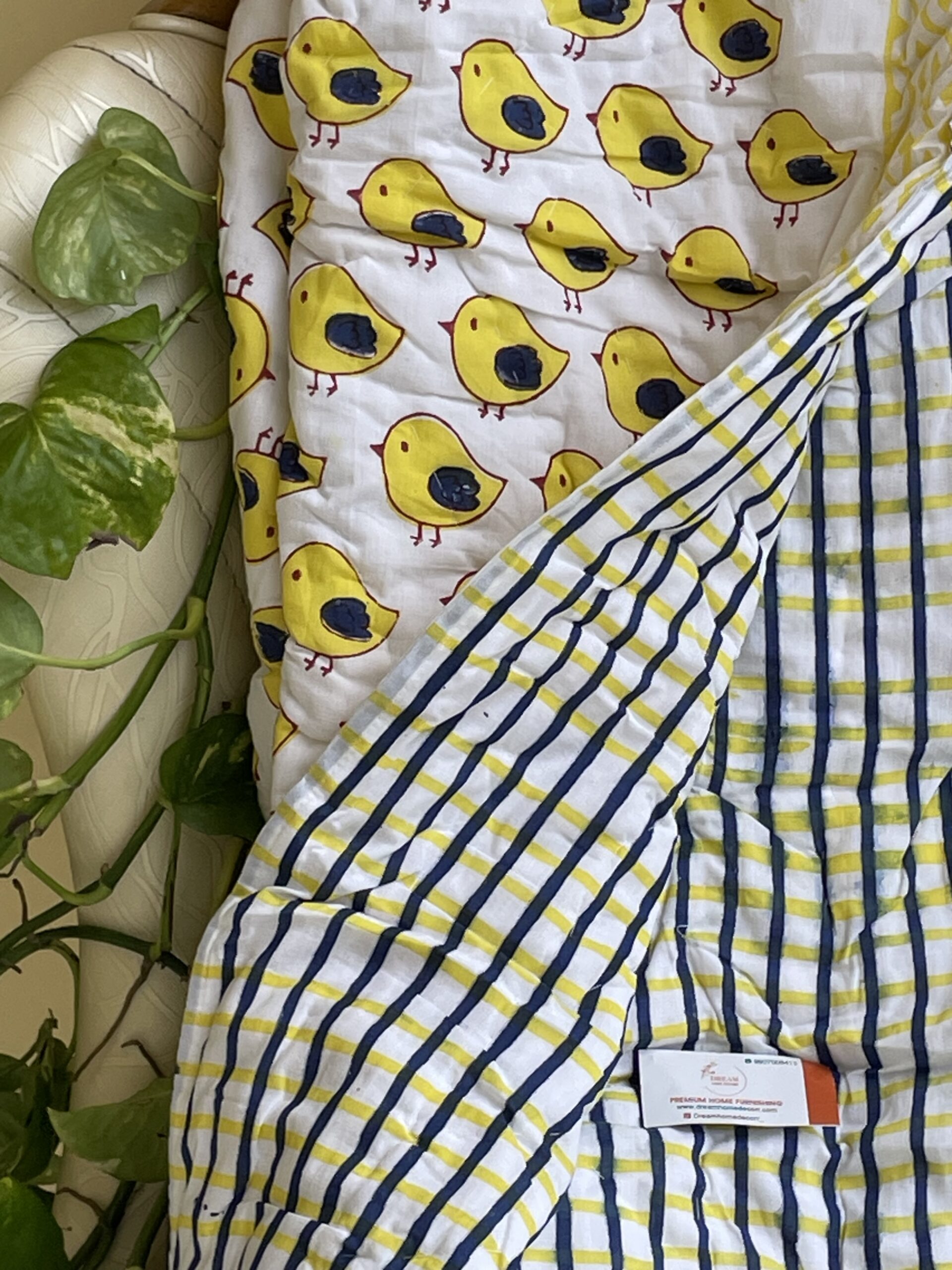 CHIRPY HANDBLOCK PRINTED REVERSIBLE MULMUL BABY QUILT | COMFORTER