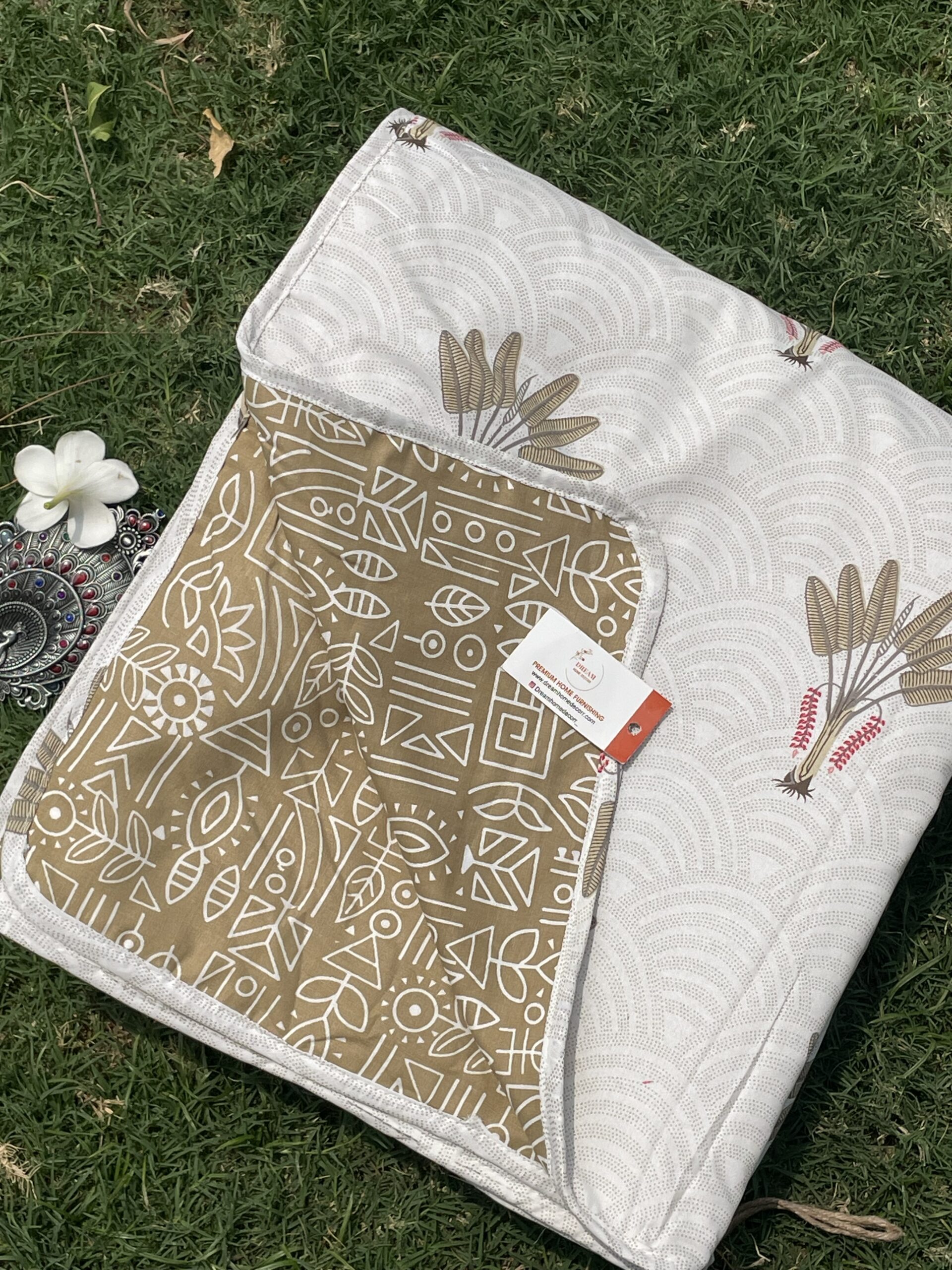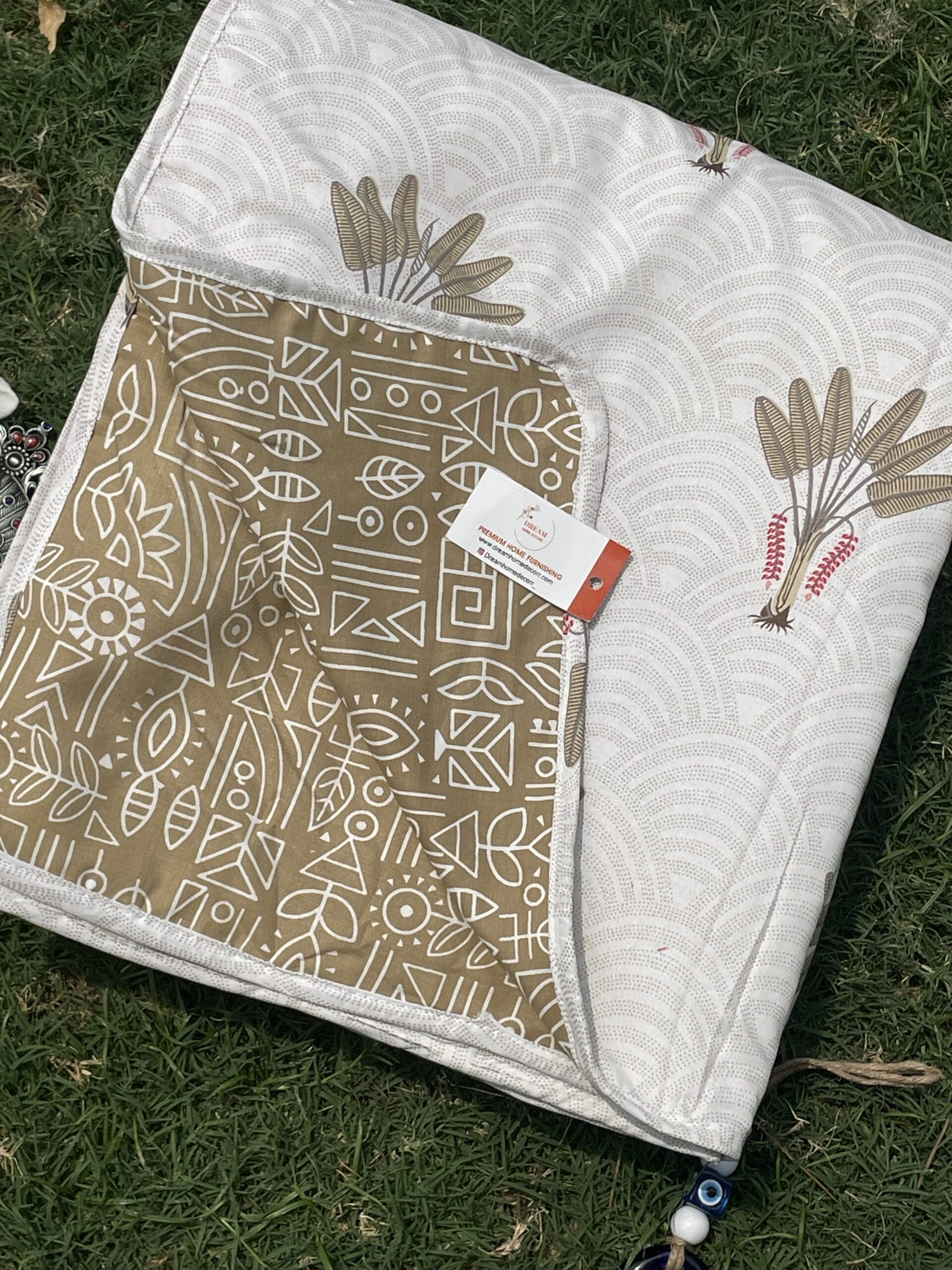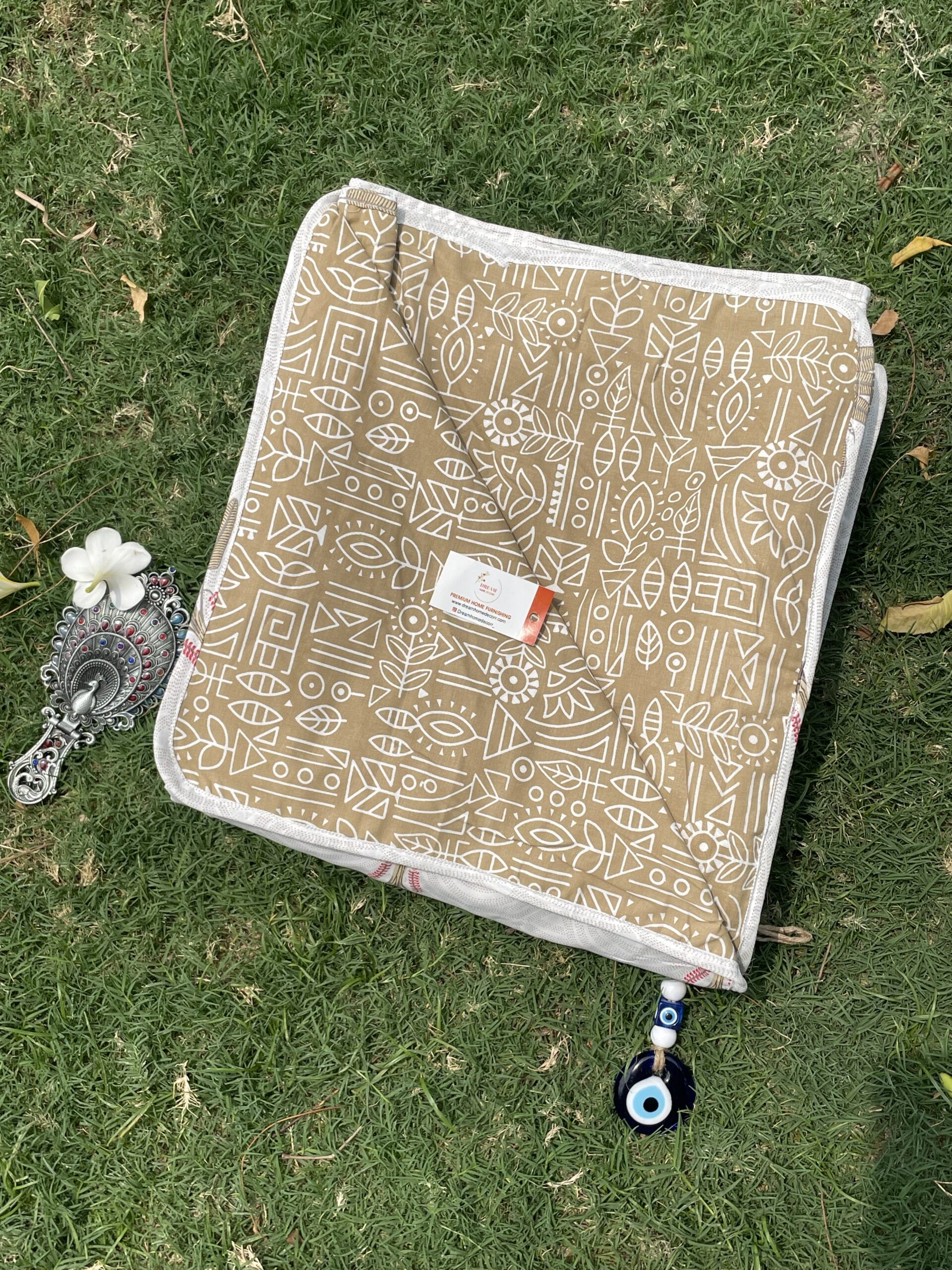 This dohar has two layers of soft cotton, a middle layer of flannel sheet & finished with complementing piping on all the four sides for a tidy & attractive look.