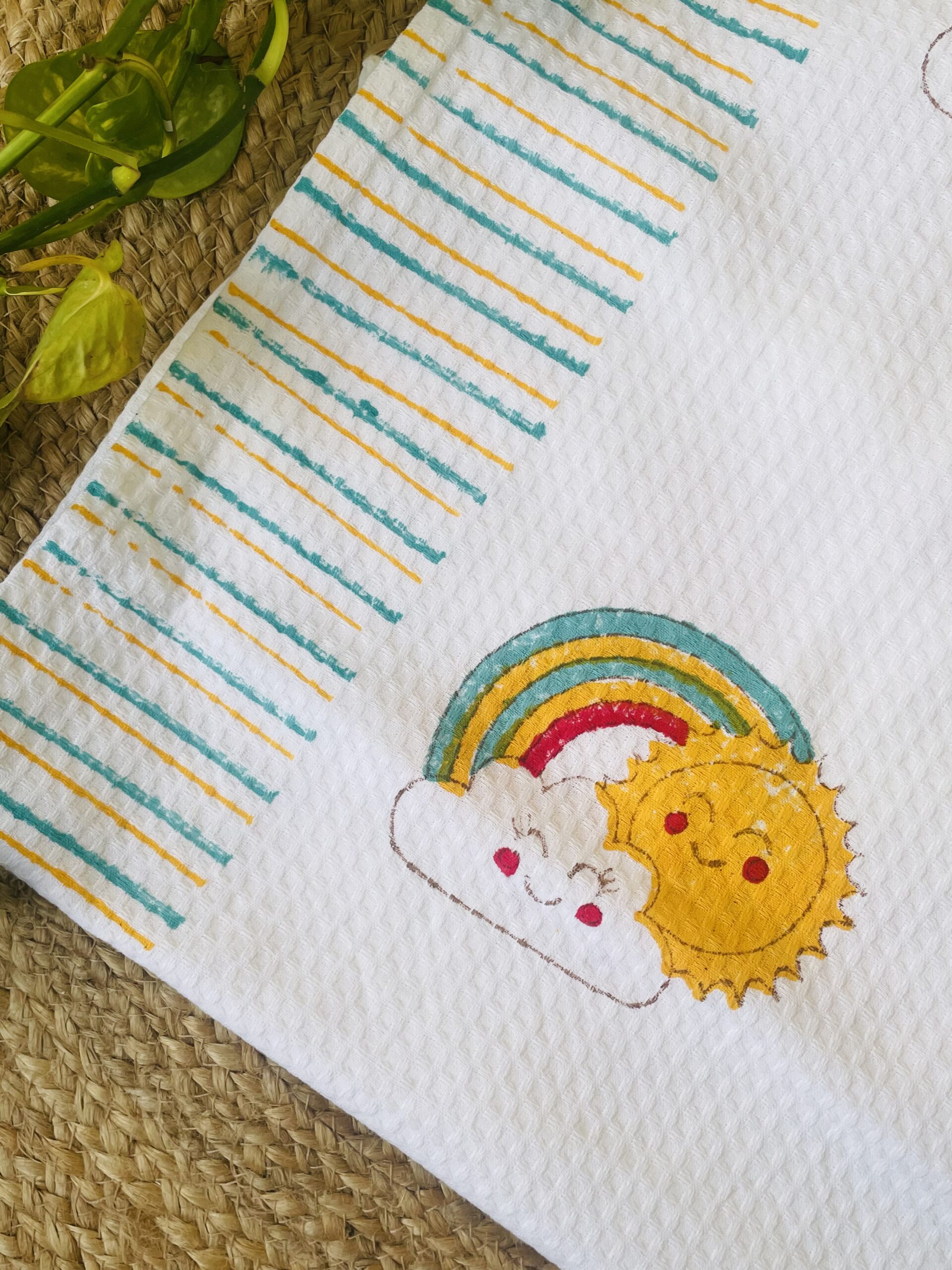 From beach to brunch, our block printed waffle towels are your new go-to! Handcrafted with love, 100% cotton.