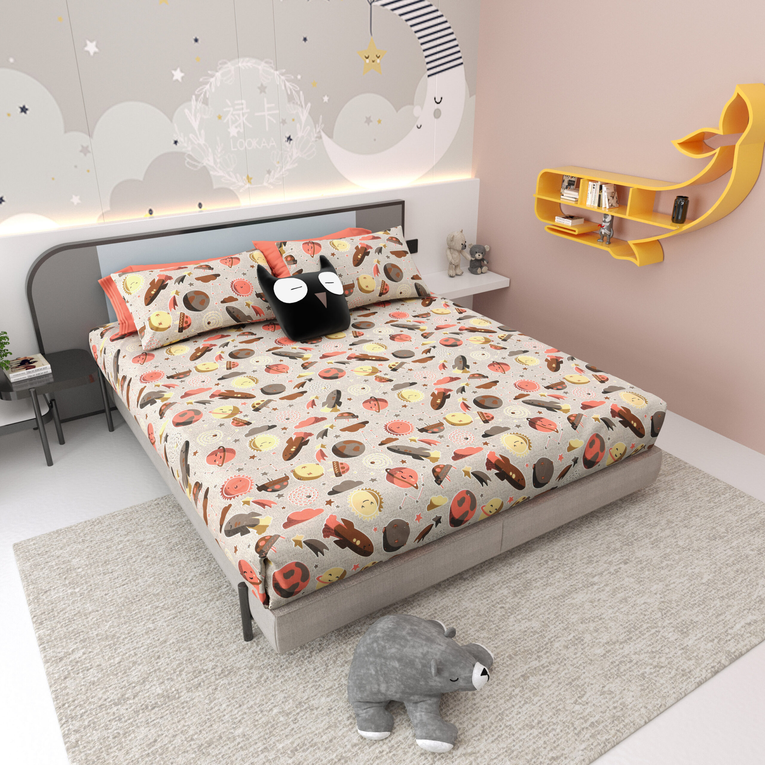 FUTURE ASTRONAUT ORANGE SOFT COTTON KIDS BEDSHEET 100ร—108