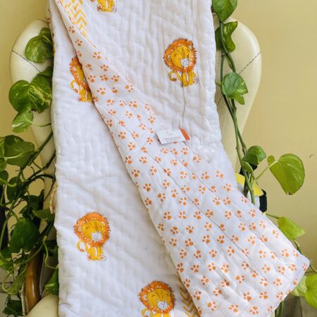 Our Snowy baby quilt is made with the softest organic cotton mulmul fabric, soft against your little one’s skin, filled with a layer of organic cotton and two layers of breathable mulmul keeps the baby appropriately warm.