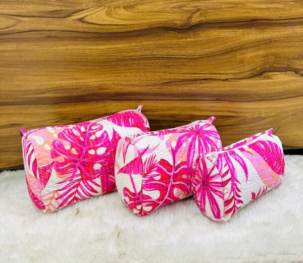 SET OF THREE COSMETIC BAG/POUCHES WITH WATERPROOF LINING