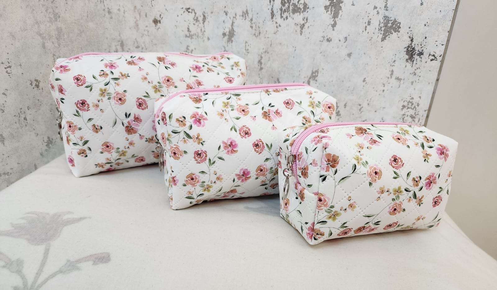 SET OF THREE COSMETIC BAG/POUCHES WITH WATERPROOF LINING