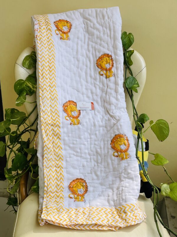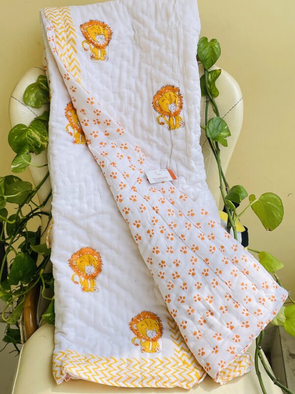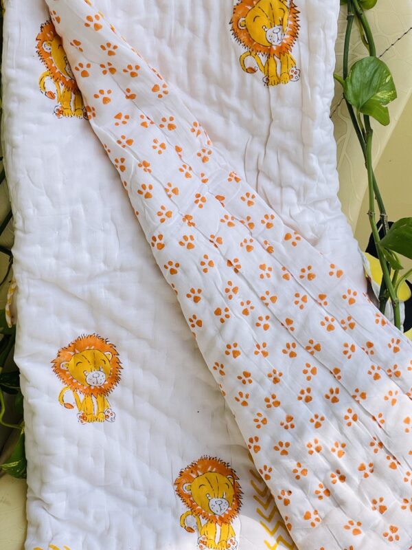 SIMBA HANDBLOCK PRINTED REVERSIBLE MULMUL BABY QUILT | COMFORTER