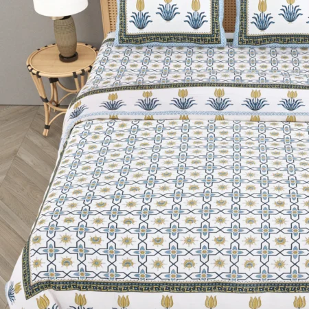 Bring Home a Premium Piece handmade with Love. This 90 x 108 king size bedsheet is perfect depiction of floral dreams with intricate floral motifs & unique print design. It comes with two pillow covers in Pure Cotton Material that is soft on skin, comfortable to sleep on & easy to maintain.